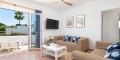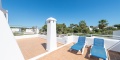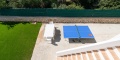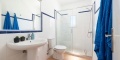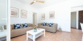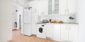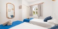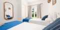 Im Erdgeschoss finden Sie drei Schlafzimmer mit Einzelbetten, alle klimatisiert, ein voll ausgestattetes Badezimmer mit Dusche, ein geräumiges Wohn-Esszimmer mit Smart-TV, DVD-Player, Deckenventilator und direktem Zugang zur Terrasse. Die separate Küche ist vollständig ausgestattet mit Backofen, Mikrowelle, Geschirrspüler, Kühlschrank, Gefrierschrank und Waschmaschine.