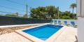 The outdoor space at Villa Nautilus is perfect for enjoying Mallorca’s climate: a private swimming pool (7 x 4 m) with entry steps, sun loungers, a parasol, an outdoor dining area, and a built-in barbecue. The fenced garden with lawn and shaded areas offers a safe play space for children.
