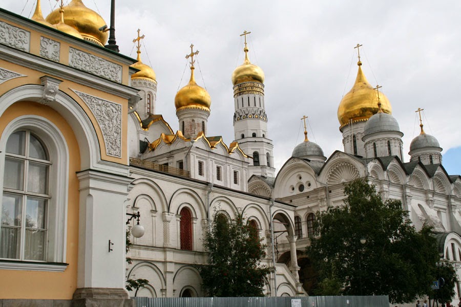 vecharon materiales de otro templo de tiempos de Dmitri Donskov, y sus criptas son un tesoro arquitectico que alberga el museo arqueologico del Kremlin.